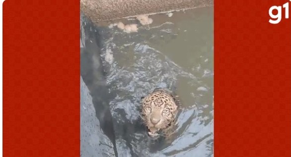 Uma onça-pintada foi encontrada em situação de risco ao ficar presa em um canal de uma usina elétrica no município de Juscimeira, a cerca de 160 km de Cuiabá, nesta quinta-feira (19).