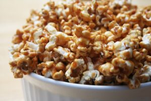 Retire imediatamente a pipoca da panela para não queimar e coloque na travessa em que para que esfrie  e sirva.