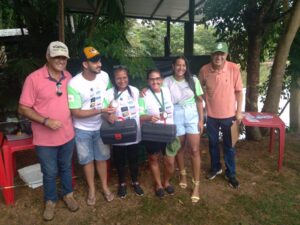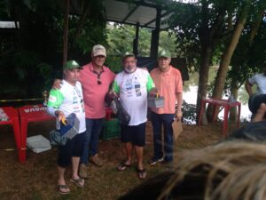 A dupla feminina, Maria das Graças e Nair P da Silva, sagraram se em 3º lugar e levaram duas tralhas de pesca mais medalhas.
