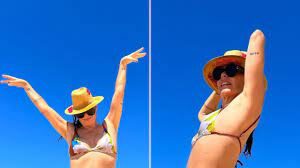 Ex-atriz exibe corpaço em forma em dia na praia