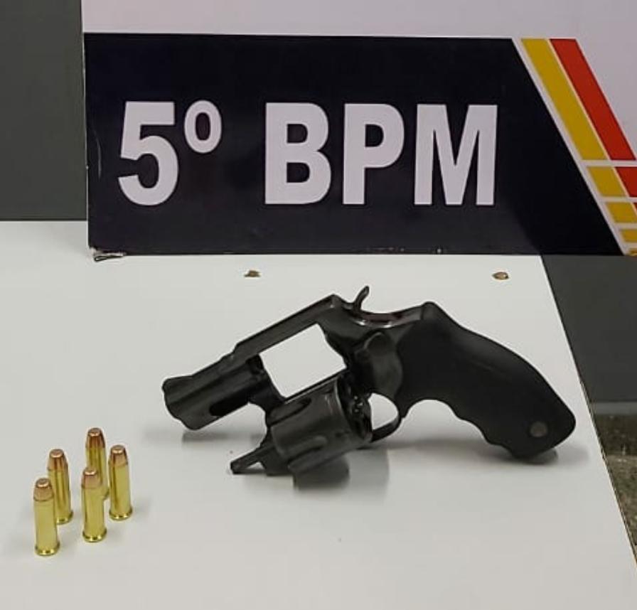 Os policiais em rondas localizaram o carro apontado e abordaram o suspeito. A arma de fogo estava debaixo do banco do passageiro do automóvel.  O revólver calibre 38 estava carregado com cinco munições e foi apreendido.