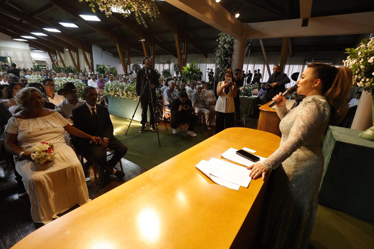 Emocionada, a secretária de Promoção e Assistência Social, Alessandra Ferreira, idealizadora do projeto, disse aos presentes que o seu coração se enche de contentamento de poder fazer parte desse momento especial na vida dos casais. “Esse evento foi preparado com muito amor e carinho. Quero que vocês saibam que eu não tive um casamento desse, porque na época a gente não tinha condições para isso. Esse é um projeto do meu coração, mas realizado com o apoio de toda nossa equipe”, falou.