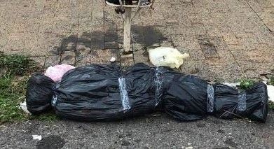 Conforme a PM, o corpo estava coberto com saco de lixo preto e um lençol roxo