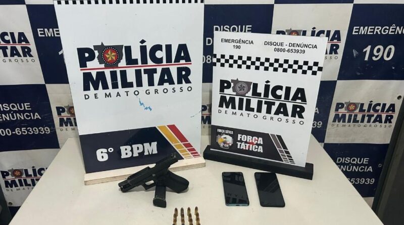 Equipes do 6º Comando Regional impediram um possível crime de homicídio ao deter dois membros de uma facção criminosa, sendo um homem de 21 anos e um adolescente de 17, por porte ilegal de arma de fogo, na noite desta segunda-feira (5.1), em Cáceres. Com os suspeitos, os militares apreenderam uma pistola e 17 munições.