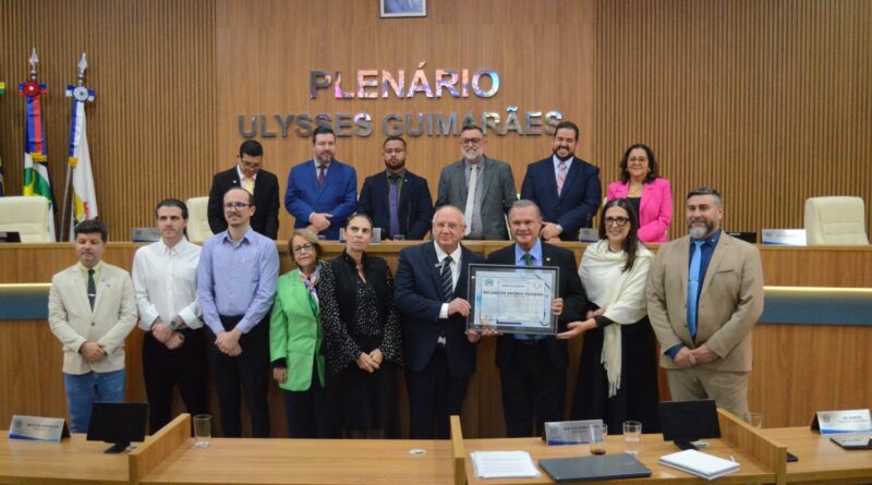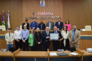 A Câmara Municipal de Rondonópolis entregou, nesta quarta-feira (25), durante a sessão ordinária, a Moção de Aplauso ao senador da República Wellington Fagundes, em reconhecimento à sua notável trajetória política e relevantes serviços prestados ao estado de Mato Grosso, especialmente a Rondonópolis.