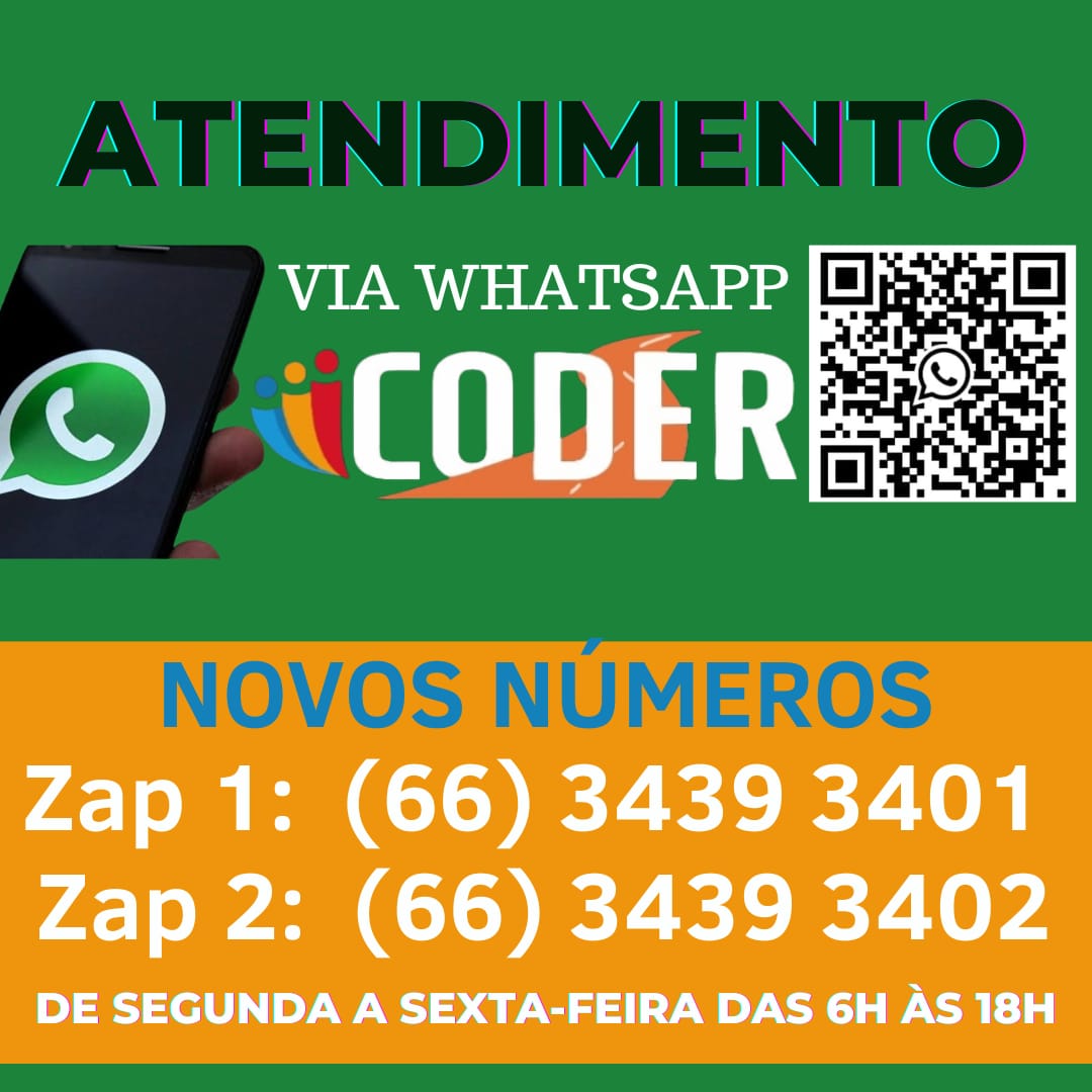 Coder disponibiliza novos números de atendimento via WhatsApp.