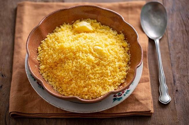 1-Para não ter erro na hora de comprar a farinha, procure no supermercado por farinha de milho flocão, ou farinha de milho para cuscuz nordestino.