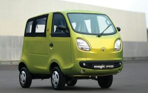 Concebido para ser a minivan mais barata do mundo, o indiano Tata Magic Iris é fabricado sobre a mesma base do subcompacto Nano . Então tiveram que encaixar a carroceria maior numa plataforma pequena. E o resultado é o que você vê na imagem acima. Ah, o motor 0.6, que leva o carrinho a apenas 55 km/h também é o mesmo do Nano.