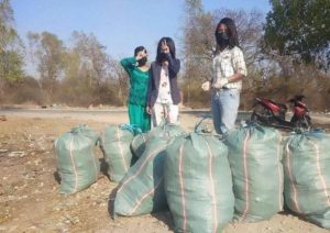 Moradores de uma ecovila recolheram sacos e mais sacos de lixo.
