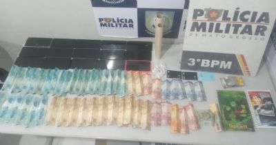 Dois homens foram presos na madrugada de quarta-feira (21), por estelionato, tráfico de drogas, violência doméstica e descumprimento de medida protetiva, em Cuiabá. As equipes apreenderam 15 aparelhos celulares, R$ 1.570 em espécie, onze porções de entorpecentes e cadernos com suposta anotações de venda de drogas e golpes via aplicativo.