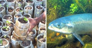O setor de pesca escocês também está ajudando a plantar milhões de árvores ao longo de riachos e rios remotos para ajudar a proteger a população de salmão selvagem.