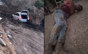 Durante a troca de tiros, o motorista do carro em fuga perdeu o controle ao entrar em uma rua em obras e bateu num barranco.