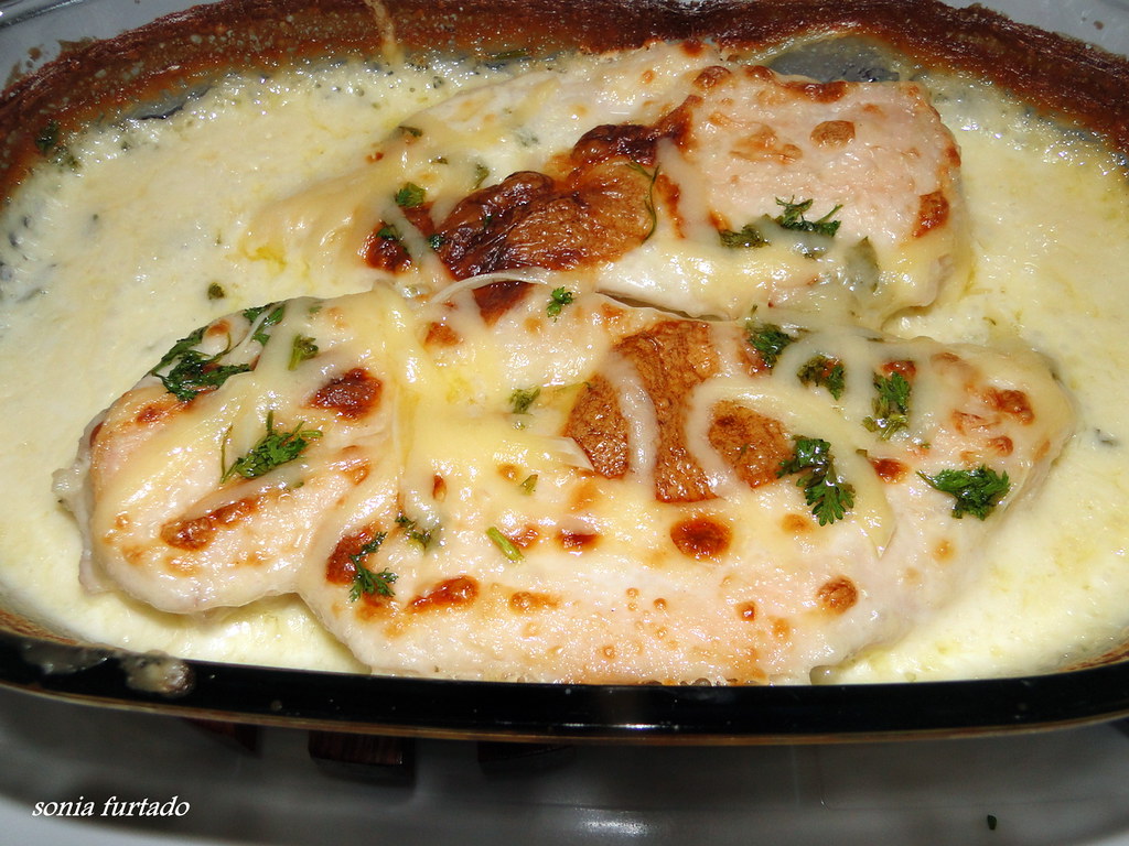 Filé de frango cremoso com requeijão e creme de leite.