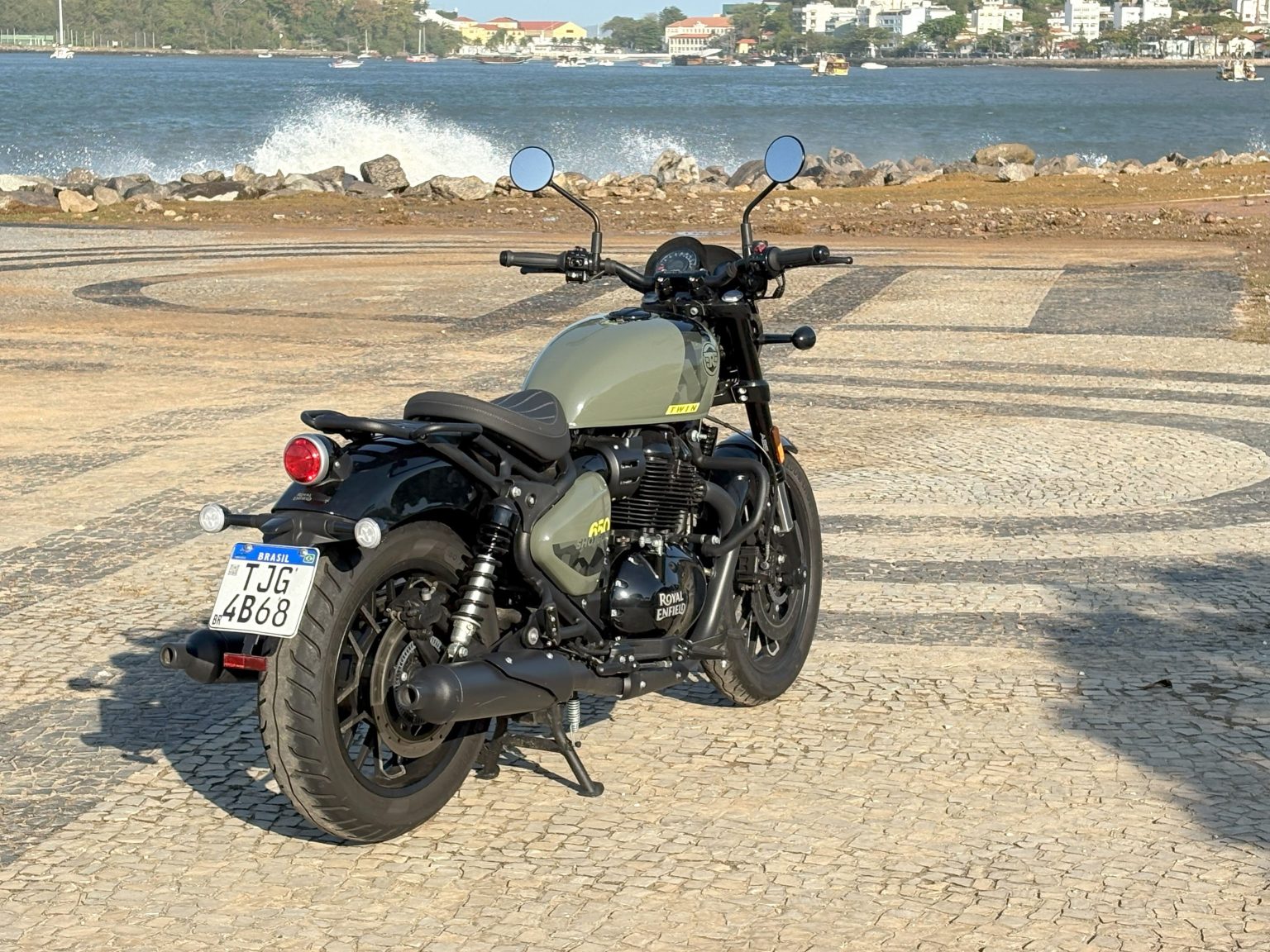 Para quem tem muitas décadas de estrada, o ritmo pulsante e marcado do motor bicilíndrico da Royal Enfield Shotgun 650 é como um chamamento à memória. Mais que apenas cenário, as linhas retrô e a simplicidade dos comandos inspiram também um comportamento mais contemplativo de quem está na condução. Já o rendimento é semelhante ao de modelos atuais. E é nesta fusão que mora o prazer em experimentar a motocicleta da marca indiana. Boas acelerações, ciclística equilibrada, assento confortável e rodagem suave.
