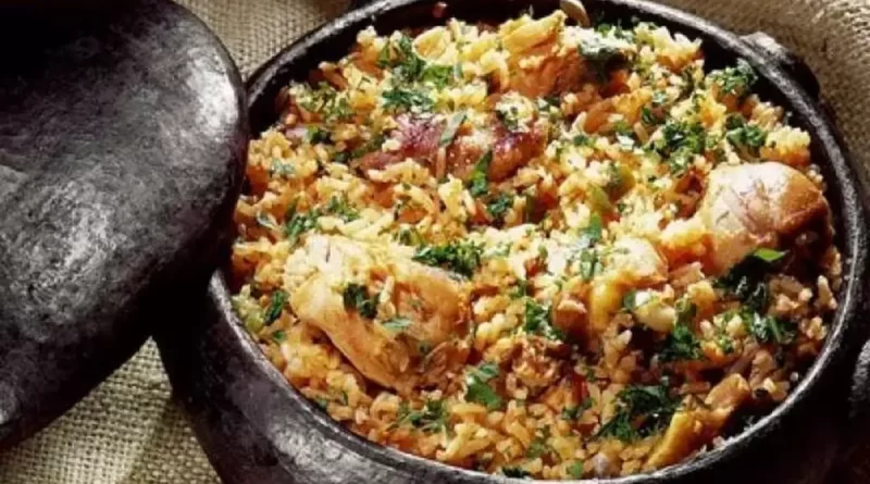 Frango caipira com arroz