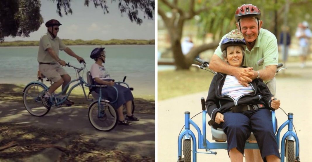 Ciente de que Glad não conseguiria pedalar sozinha por muito tempo, Bill desenvolveu uma bicicleta especial para andar com a amada, mantendo a rotina de sempre e garantindo qualidade de vida para ela.