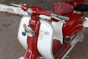 Ao atravessar a porta de vidro do Automóvel Clube do Brasil é impossível não notar a Lambretta LD de 1958, vermelha e branca, tão bem cuidada que parecia que tinha acabado de sair da fábrica.