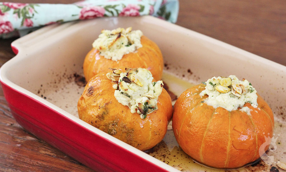Mini Abóbora Recheada com Ricota e Shimeji.