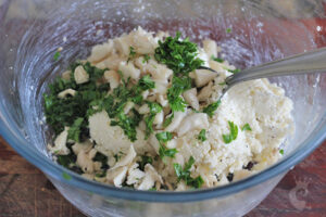 Refogue o shimeji no óleo de gergelim até dar uma amolecida e misture com a massa de ricota reservada.