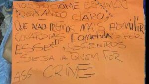 No bilhete também estava escrito, segundo o site Dourados News: “nós do crime estamos deixando claro que não iremos mais admitir covardias cometidas por esses justiceiros, seja quem for”.
