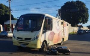 Um grave acidente de trânsito entre uma moto e um micro-ônibus/Food Truck foi registrado na manhã desta quinta-feira (13), na Avenida Júlio Campos, região do Bairro Mapim, em Várzea Grande. O motociclista ficou gravemente ferido.