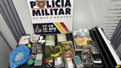 Em seguida, outros três envolvidos foram encontrados em uma residência próxima à lanchonete da Edilaine, durante busca domiciliar. No local, foram apreendidos drogas (pasta base e cannabis sativa), centenas de invólucros para tráfico, balança de precisão, dinheiro fracionado, raspadinhas e banners relacionados a jogos de azar fomentados pela organização criminosa.