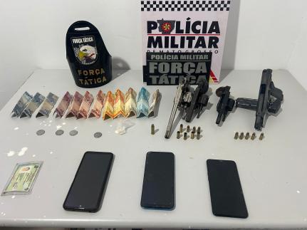 Com eles, a polícia apreendeu 3 revólveres, sendo dois calibres 32 e um calibre 38, além de uma pistola. Também foi apreendido 7 porções de maconha, uma de pasta base de cocaína e R$ 428.