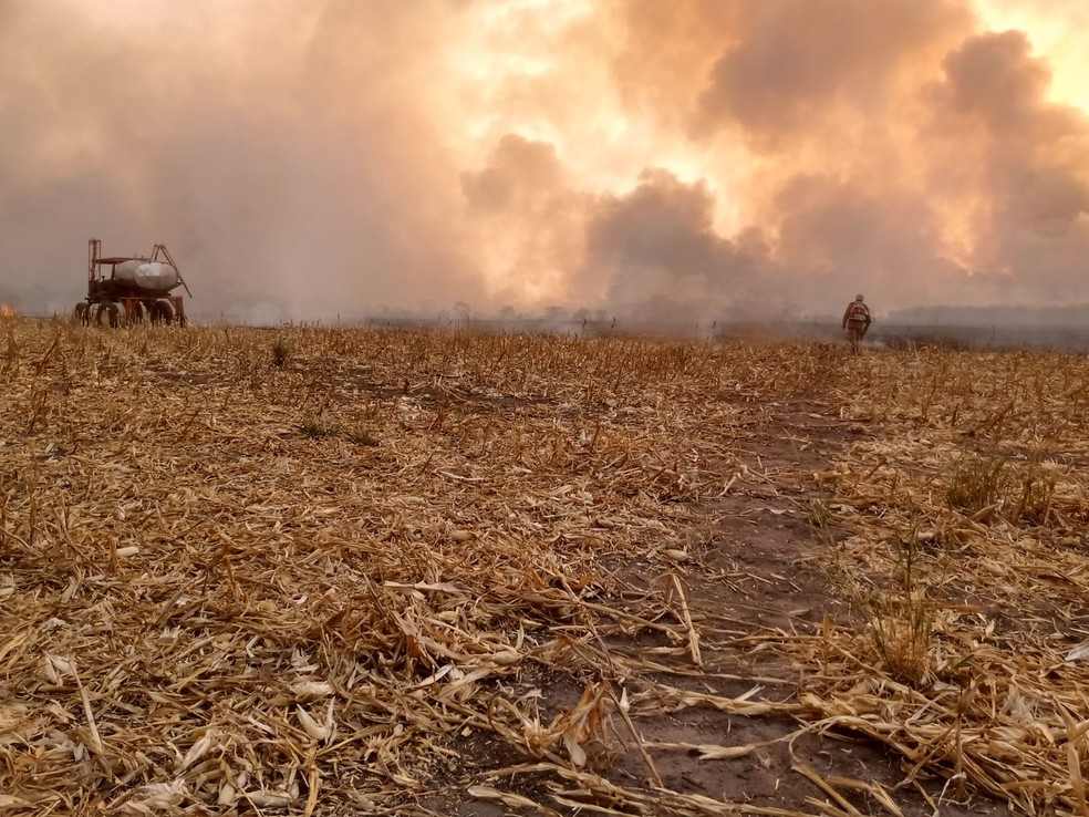 Segundo o Corpo de Bombeiros, pelo menos quatro fazendas foram atingidas pelo fogo.