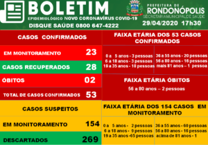 Diante de informações não oficiais sobre casos de Covid-19 em Rondonópolis divulgadas em órgãos da imprensa e redes sociais, a Prefeitura de Rondonópolis esclarece que desde o início da confirmação de casos na cidade divulga diariamente um boletim no site www.rondonopolis.mt.gov.br, bem como nas redes sociais oficiais da Prefeitura de Rondonópolis.