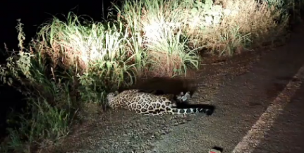 Onça-pintada resgatada após ser atropelada na MT-320 não resistiu aos ferimentos e morreu na quarta-feira (28), na clínica veterinária Aukimia, credenciada pela Secretaria de Meio Ambiente, em Sorriso (420 km ao norte de Cuiabá).