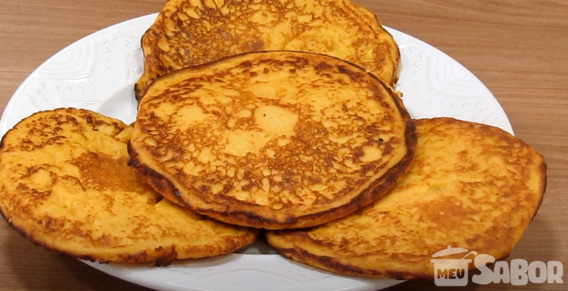 5. Numa frigideira antiaderente, untada com óleo e em fogo médio coloque porções da mistura acima e faça as panquecas no tamanho desejado.