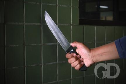 Quando os policiais chegaram, encontraram a vítima com um corte no braço e sangrando. Ela contou que o suspeito desferiu um golpe de faca contra ela e ao se proteger, atingiu o braço.