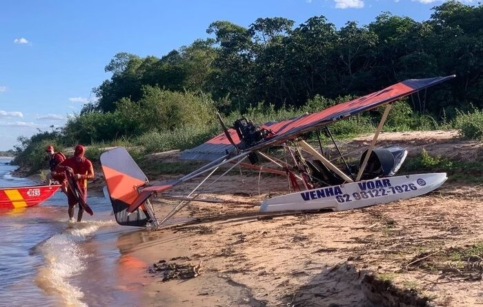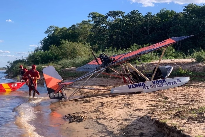 Piloto afunda aeronave no Araguaia e é resgatado por bombeiros.