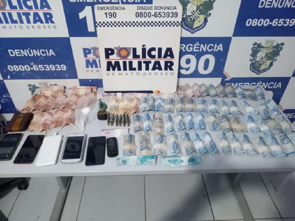 Devido à situação, foi iniciado o procedimento de abordagem. Já no balcão foi encontrada uma porção de cocaína. Dentro do imóvel, mais porções da mesma droga e de maconha, além de três celulares e 18 munições entre calibres 32 e 38. Foi apreendido ainda R$ 576 em dinheiro.