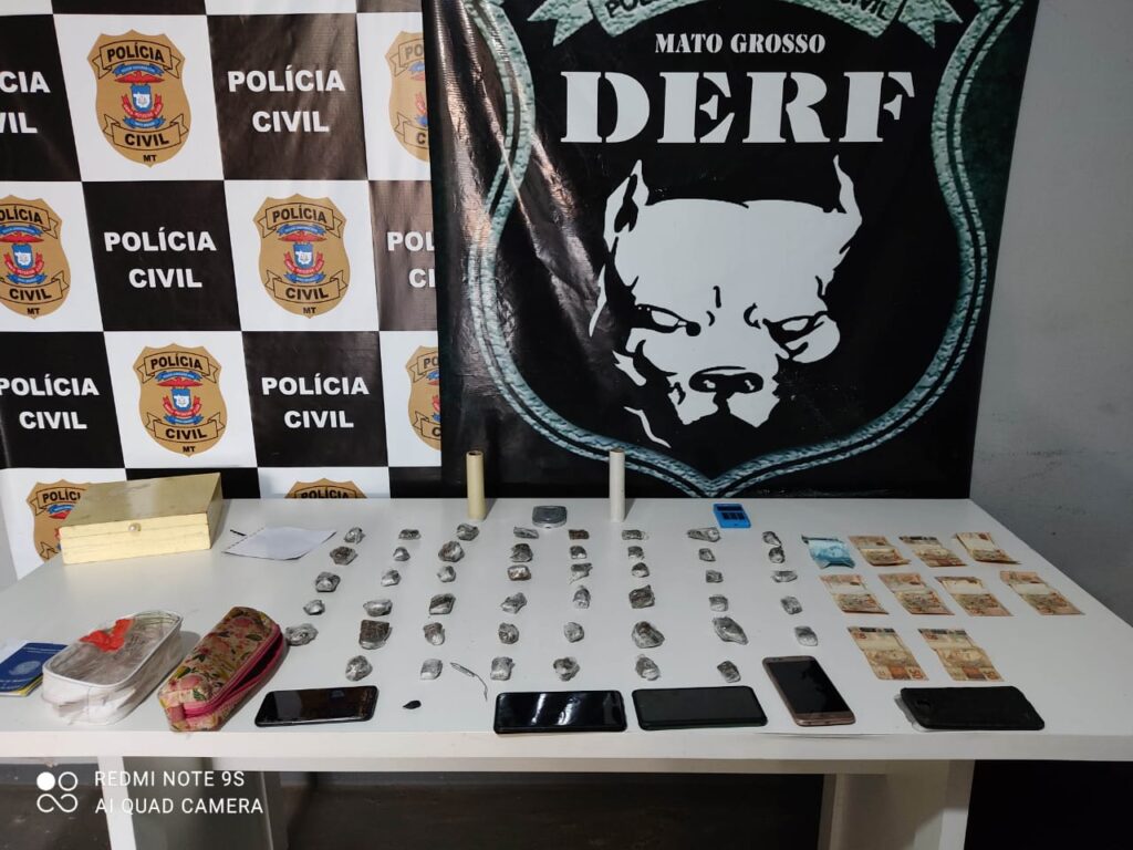 A ação resultou na apreensão de 47 porções de entorpecentes, entre maconha e cocaína, embaladas e prontas para venda, na quantia de R$ 550 em trocado, balanças de precisão, além de diversos materiais utilizados para o comércio ilícito.