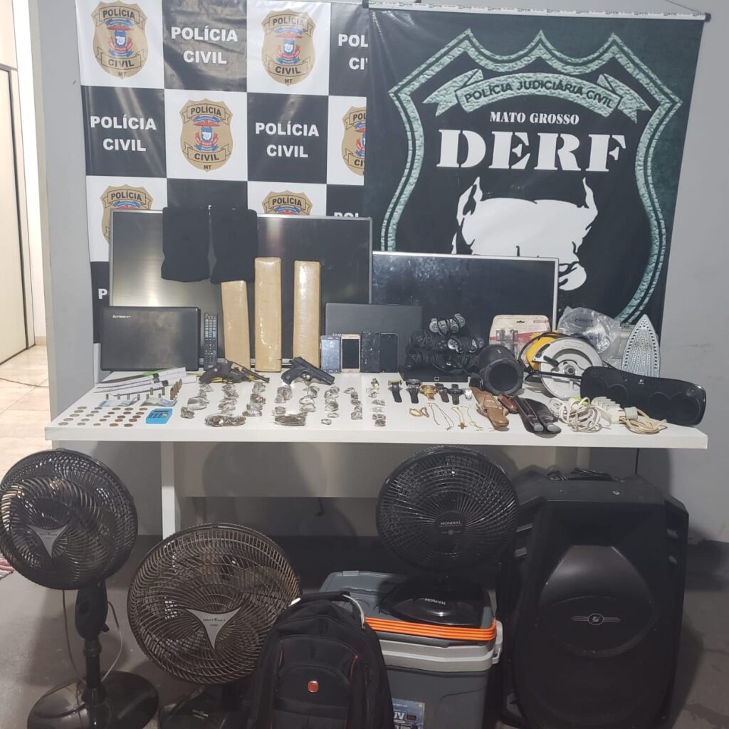 Os policiais da Derf Rondonópolis intensificaram os trabalhos de investigação para coibir e identificar autores de crimes de roubo e receberam informações de que uma residência, no bairro Cidade de Deus, que era utilizada para depósito de drogas e materiais oriundos de roubos e furtos.