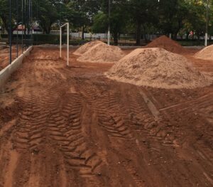 No entanto, foi proposto pela fiscalização um aditivo contratual de R$ 422.649,82 que contempla a drenagem na quadra de areia, e a completa substituição do piso da quadra poliesportiva.