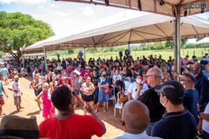 Os moradores do bairro Maria Amélia foram atendidos pelo mutirão da Prefeitura com diversos serviços ofertados gratuitamente. Durante o evento, o prefeito anunciou as ações que a administração executará no local como pavimentação asfáltica e drenagem, instalação de energia elétrica e implantação dos sistemas de abastecimento de água e esgoto. Além disso, Pátio informou que o chefe do escritório de Representação em Brasília-DF, Paulo José Correia, conseguiu cerca de R$ 30 milhões para construção das casas no bairro. “É pelo compromisso que nós temos com vocês e queremos o bem de vocês,” disse o prefeito aos moradores.