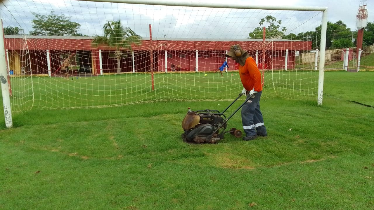 Na verdade as equipes da Coder já replantaram a grama nas áreas reservadas aos goleiros, jogadores reservas e árbitros; estão fazendo o controle de pragas e erva daninhas; vão fazer posteriormente a adubação foliar para fortalecer e revitalizar o gramado, mais uma poda e compactação de solo/grama nivelando o gramado e retirando eventuais elevações, deixando o gramado perfeito para os jogos.