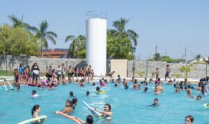 Em uma manhã de céu azul sem nuvens e sol forte as atividades com águas foram as que mais fizeram sucesso. Sob o olhar atento dos coordenadores e do salva vidas a piscina ficou cheia de crianças que esbanjaram alegria e felicidade se refrescando e participando de brincadeiras, como andar flutuando nos tapetes que boiam.