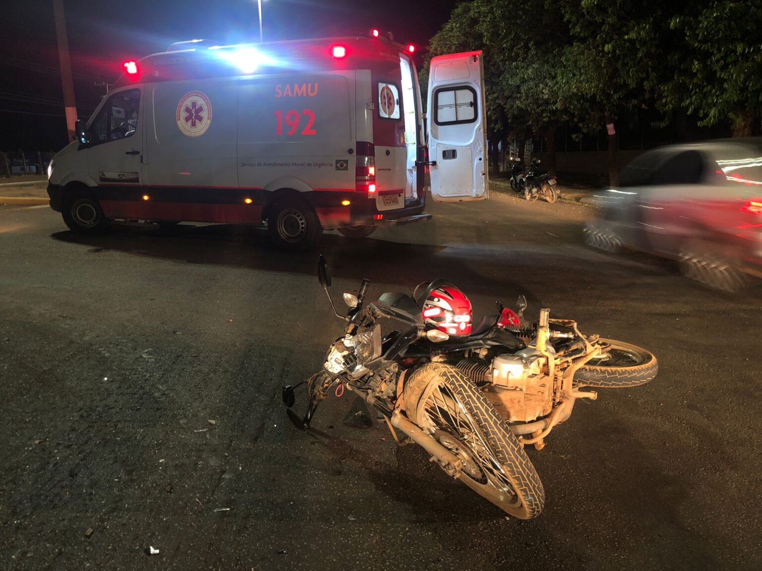 A ambulância de suporte avançada do Samu esteve no local para atender às vítimas. A mulher que estava na garupa da motocicleta teve duas fraturas na perna e lesões no rosto.