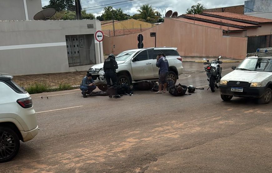De acordo com informações, a equipe realizava acompanhamento tático de suspeitos pelas ruas do bairro quando acabou colidindo contra uma SW4. Imagens mostram uma das motos embaixo da camionete.