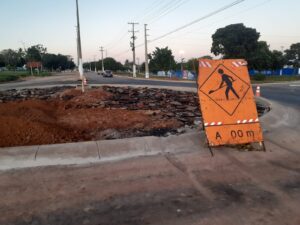 A estrutura da rotatória também já está pronta, faltando apenas o microrevestimento asfáltico, que será implementado nós dois lados da avenida, a obra de arte que está no projeto, serviços de jardinagem e sinalização de solo e colocação de placas sinalizativas da via.