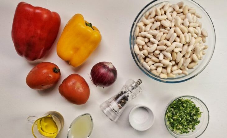• Coloque o feijão-branco já frio e mexa para envolver todos os componentes da salada;
