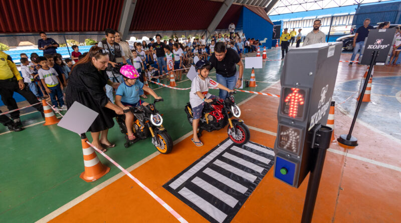 A Escola Municipal Professora Evânia Rodrigues da Silva, na região do Jardim Tropical, recebeu, nesta quinta-feira (18), a inauguração da Escolinha de Trânsito, um projeto da Secretaria Municipal de Mobilidade Urbana (Semob) da Prefeitura de Rondonópolis. A iniciativa busca conscientizar desde cedo os futuros condutores e atuais pedestres sobre a importância do respeito às leis de trânsito. A ação marca o início da Semana Nacional do Trânsito, que vai até o dia 25 de setembro.Usando uma forma lúdica e divertida, a Semob proporcionou às crianças vivenciarem situações que fazem parte do dia a dia nas ruas, como atravessar na faixa de pedestre, respeitar o semáforo e compreender a função das placas de sinalização. O espaço montado na quadra poliesportiva conta até mesmo com radar de velocidade, simulando a realidade do trânsito da cidade, e veículos elétricos como carros e motocicletas além de bicicletas.