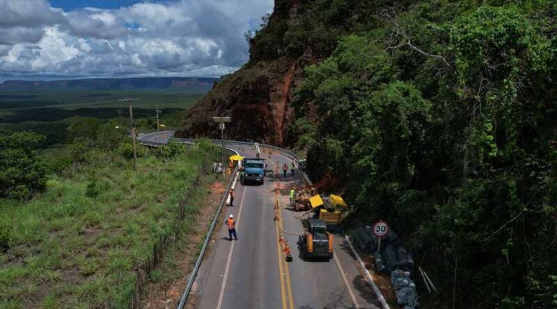 As obras de retaludamento do Portão do Portão do Inferno, na MT-251 entre Cuiabá e Chapada dos Guimarães, continuam na fase de cumprimento das condicionantes ambientais. Além do resgate da flora, salvamento e afugentamento da fauna, foi iniciada a supressão vegetal, que é feita de forma manual.