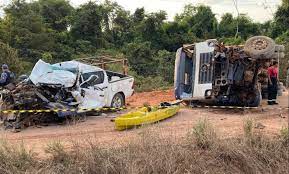 Conforme o site Visão Notícias, a colisão entre a camionete e o caminhão foi frontal. Devido ao forte impacto o caminhão chegou a tombar.