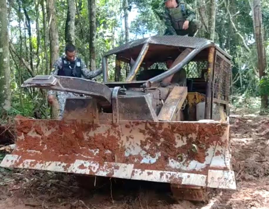 Equipes do Batalhão de Proteção Ambiental apreenderam na quinta-feira (04.03), um trator de esteira, na Comunidade de Terra Roxa, em Juína (a 735 km de Cuiabá).