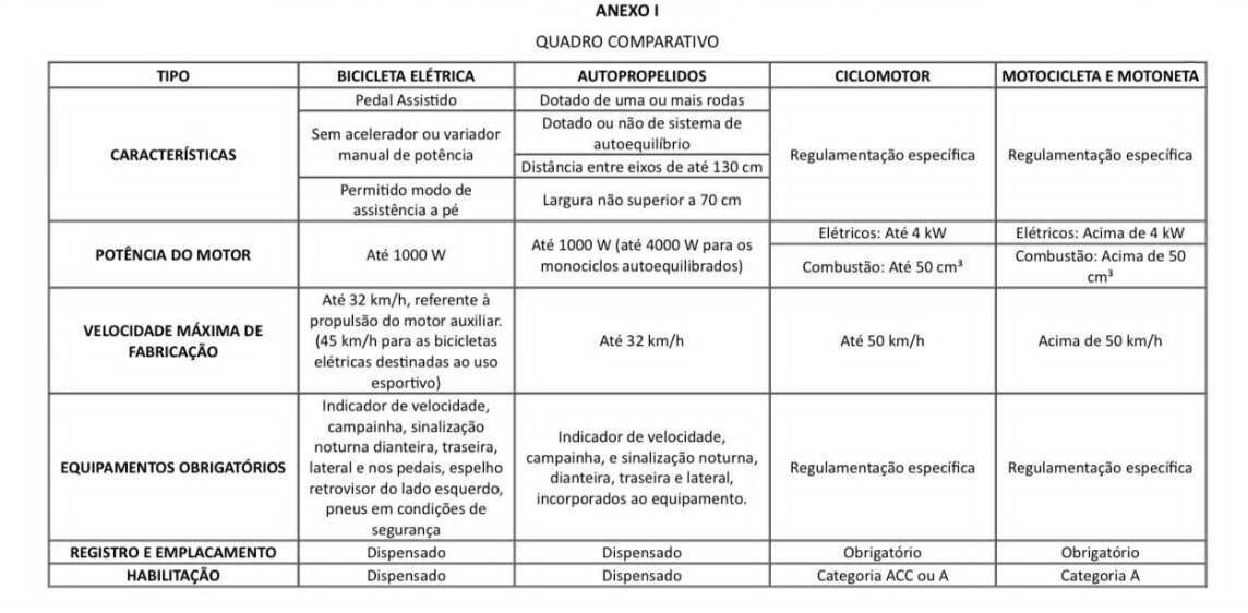 A medida define regras de trânsito em vias públicas e separa os veículos individuais em grupos conforme a velocidade que atingem e as características do equipamento. Veja abaixo algumas regras novas e outras que foram mantidas e uma tabela com as medidas