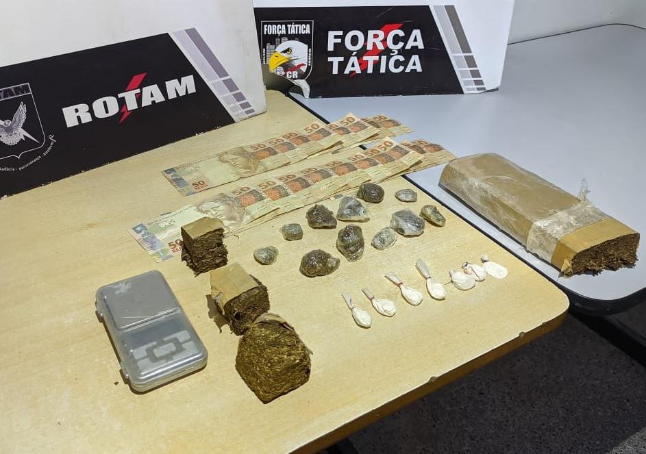 Ao se aproximar do local, os militares identificaram os denunciados que correram para dentro do imóvel e foram contidos. Os dois carregavam dinheiro e porções de maconha e cocaína nos bolsos.